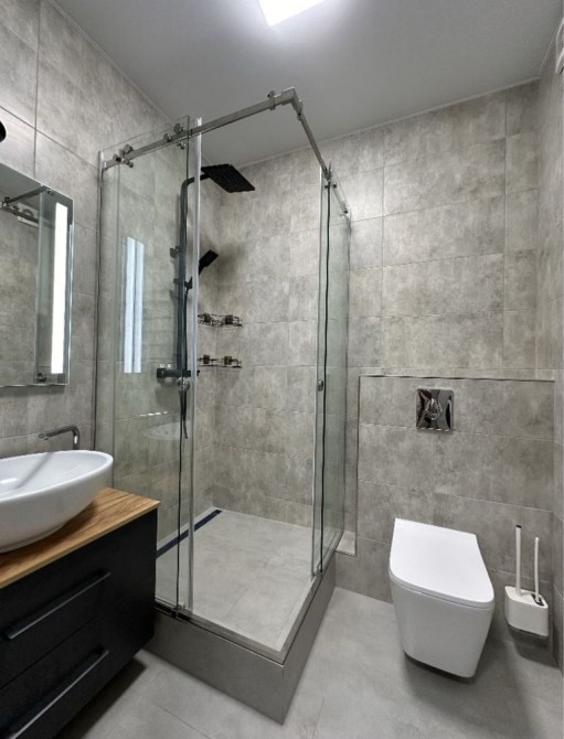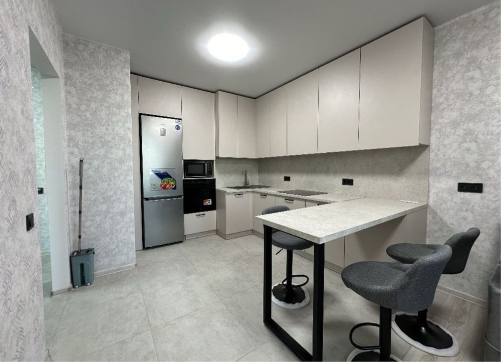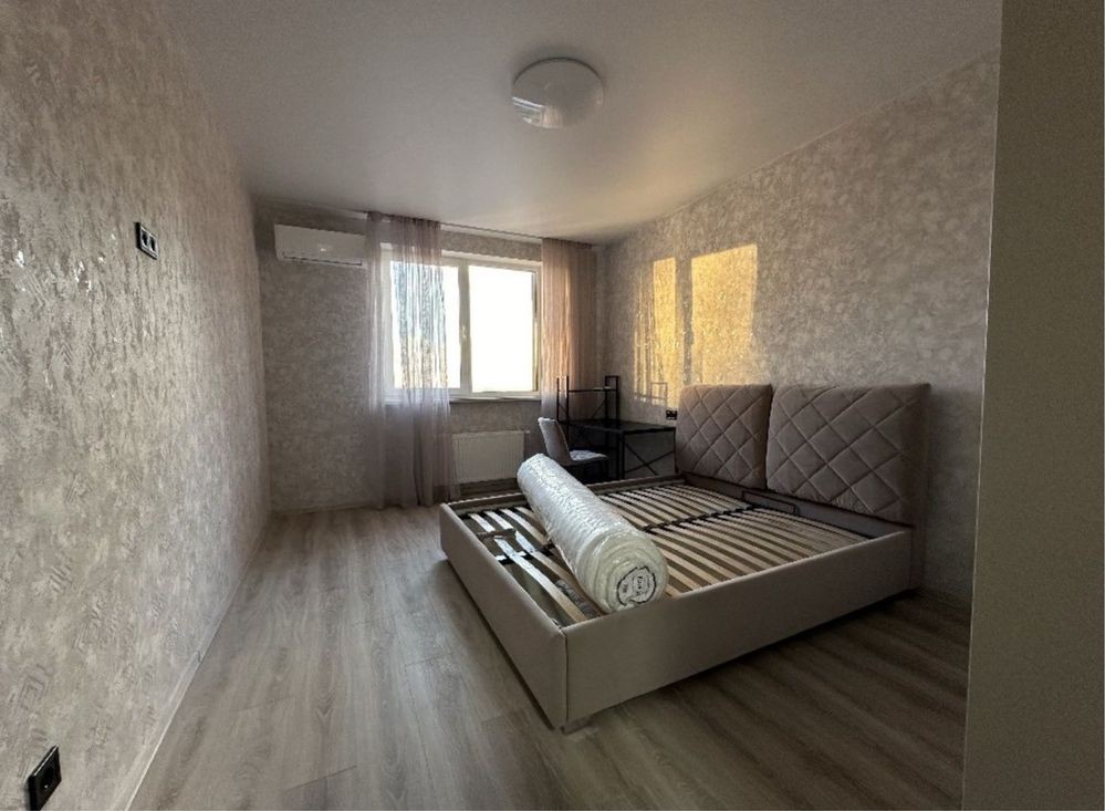 Зроблений якісний ремонт, облаштована якісною технікою та сантехнікою. Встановлені та вбудовані меблі - є шафи, двоспальне ліжко, розкладний диван, з техніки- пральна, посудомийна машини, холодильник, духова шафа, варильна поверхня, мікрохвильова піч, кондиціонер, бойлер, електрочайник, телевізор.