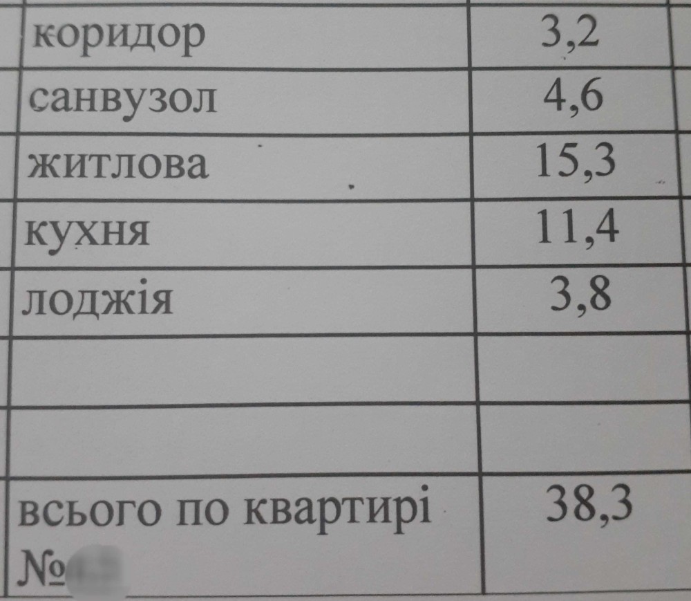 • Загальна площа 38.3 м2