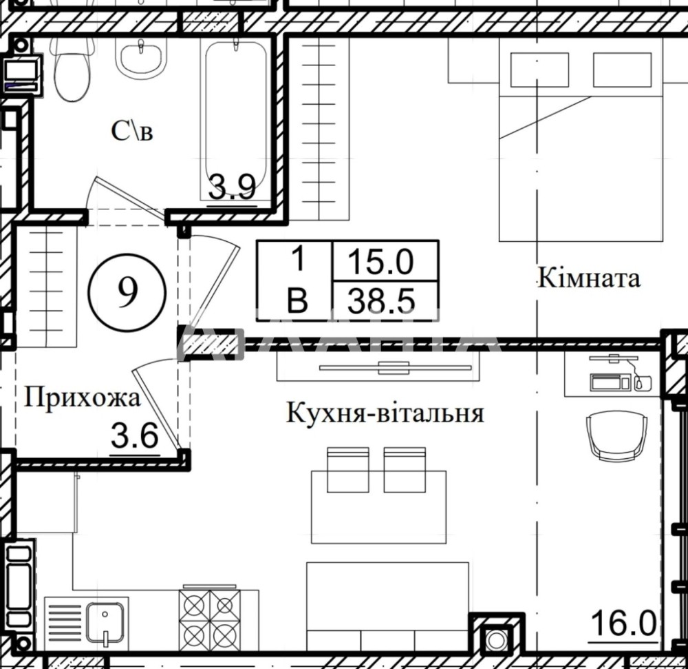• Однокімнатна