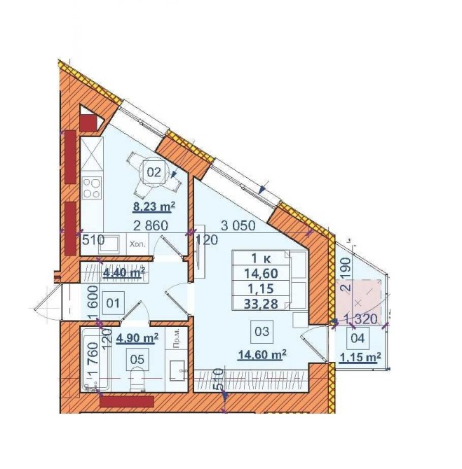• Загальна площа 33.12 м2