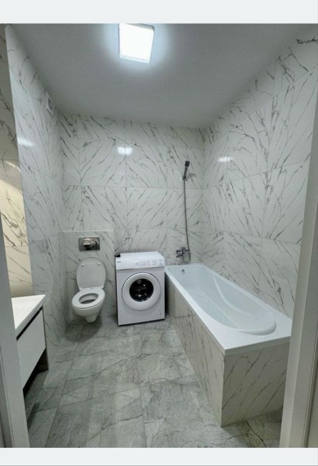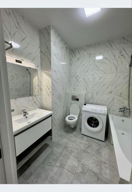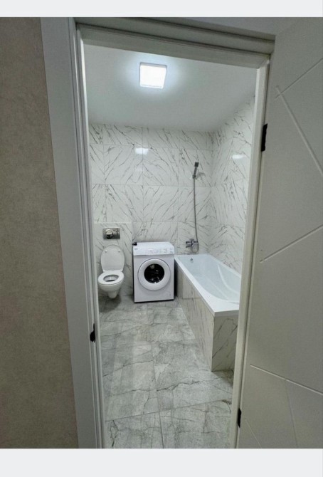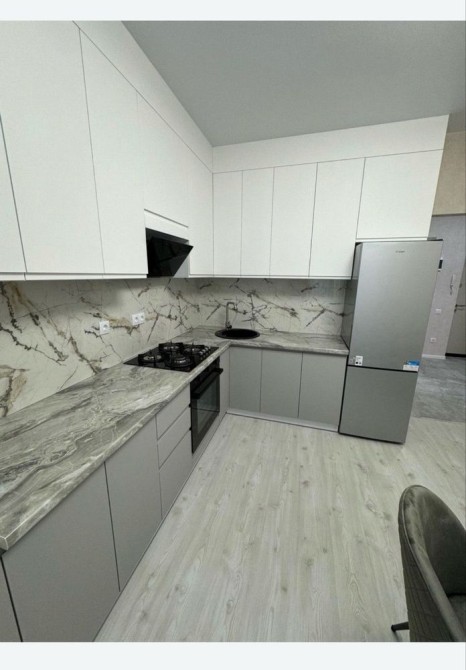 Техника – кондиционер, стиралка, бойлер, современный холодильник, новая плита на кухне.