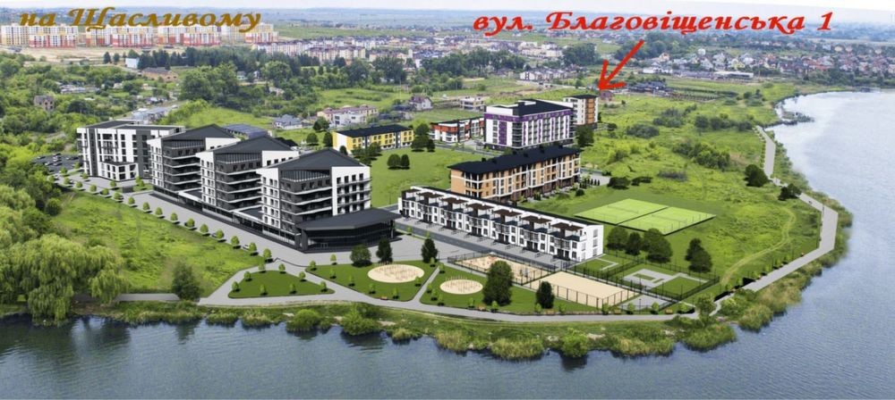 • затишний район поруч із озером та зеленою зоною для прогулянок.