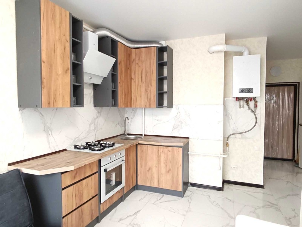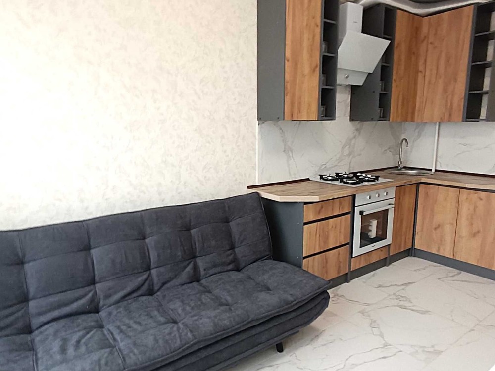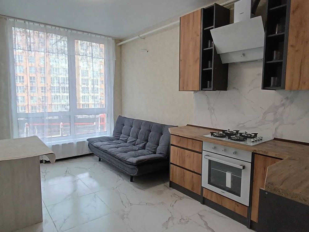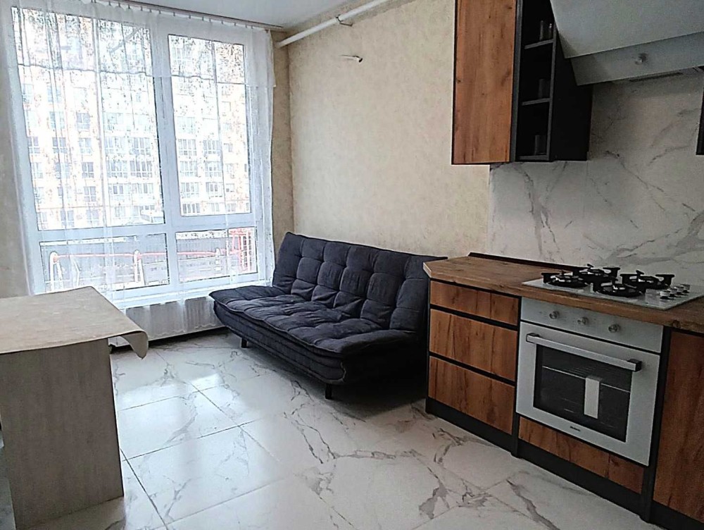 Меблі : вбудовані кухонні меблі , диван розсувний, стіл, газова поверхня, духова шафа, витяжка. 2спальне ліжко з матрацом.
