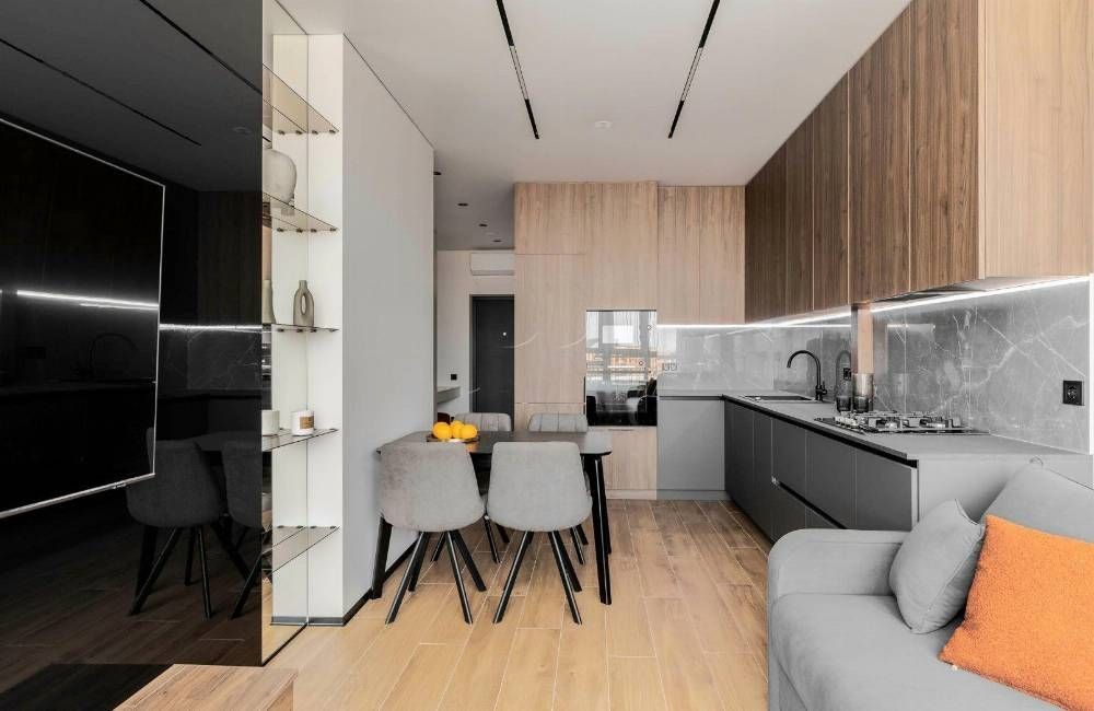- Простору кухню-вітальню з зоною для відпочинку.