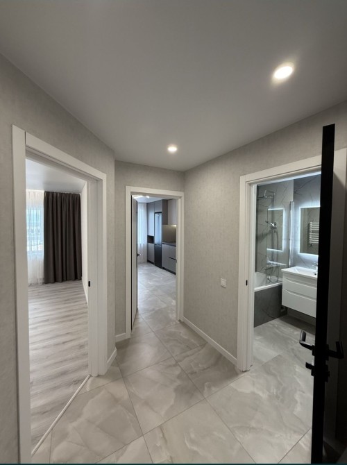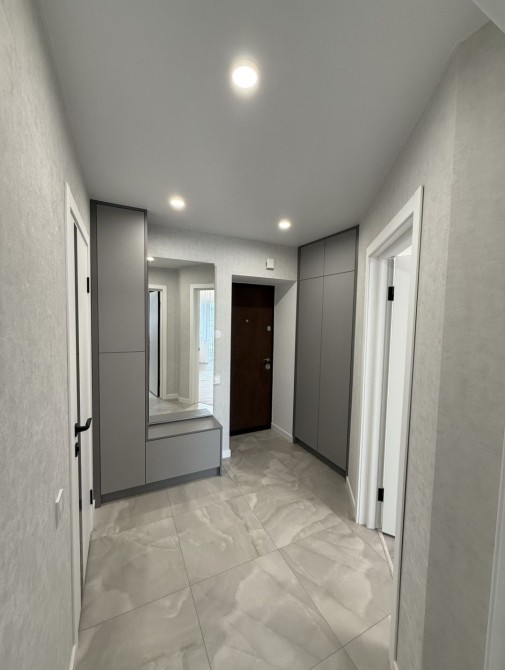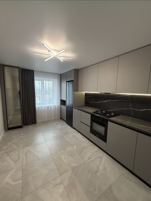 Вмонтована кухня з технікою ( газова поверхня, електро духовка , витяжка, холодильник) В коридорі прихожа. Повністю укомплектована ванна.