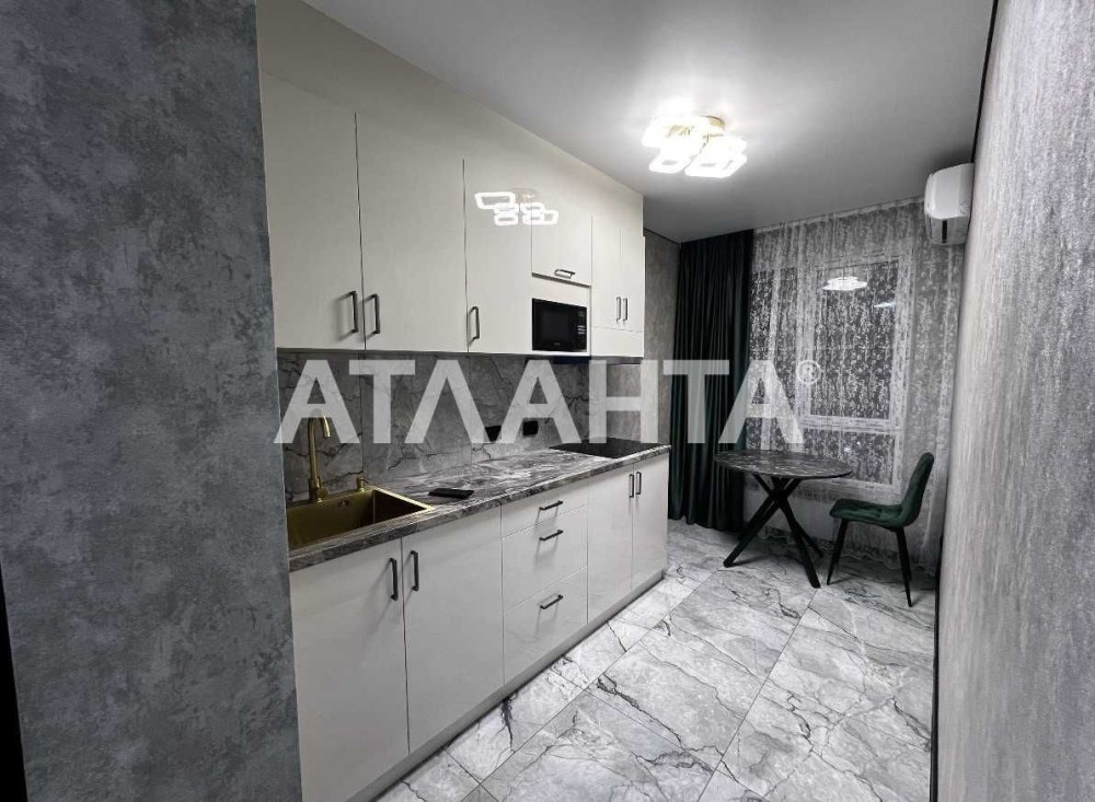 Жилье оборудовано дорогой кухонной мебелью и бытовой техникой, которые останутся для новых владельцев. Санузел совмещен и облицован керамической плиткой, что добавляет квартире изысканности и уюта.