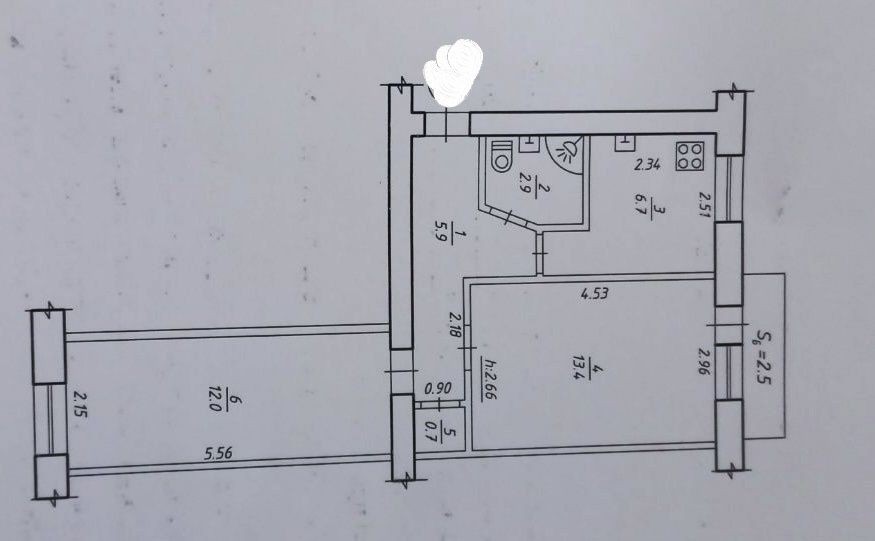 • Площа кухні 5 м2