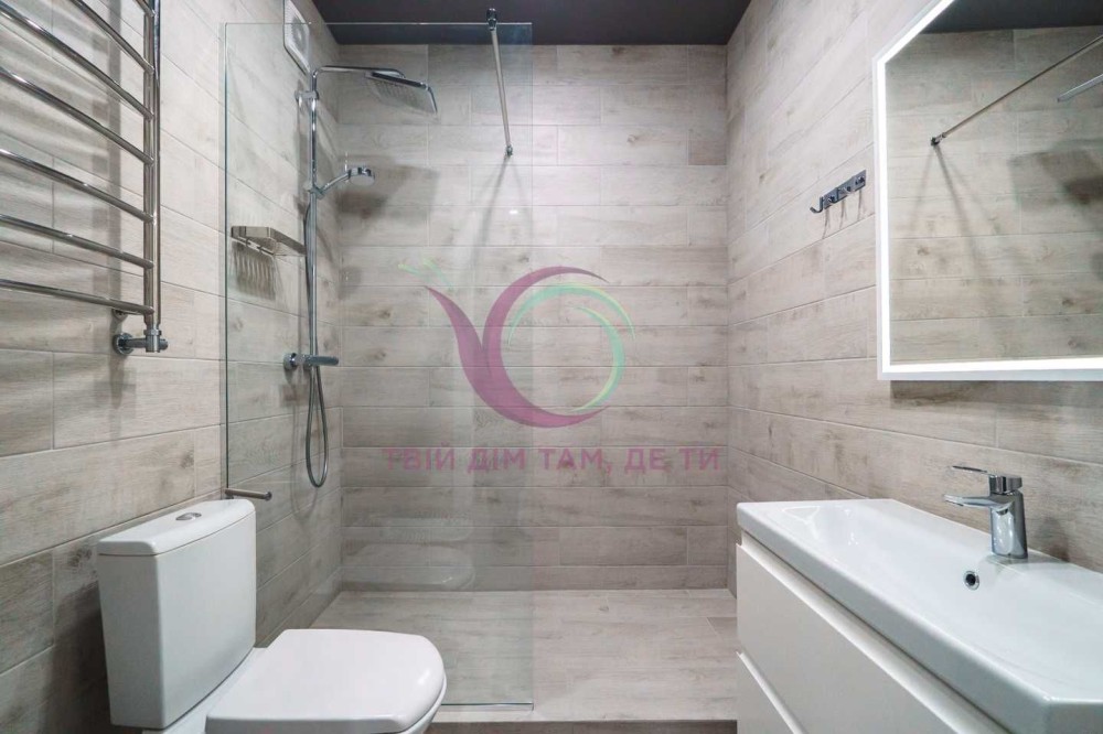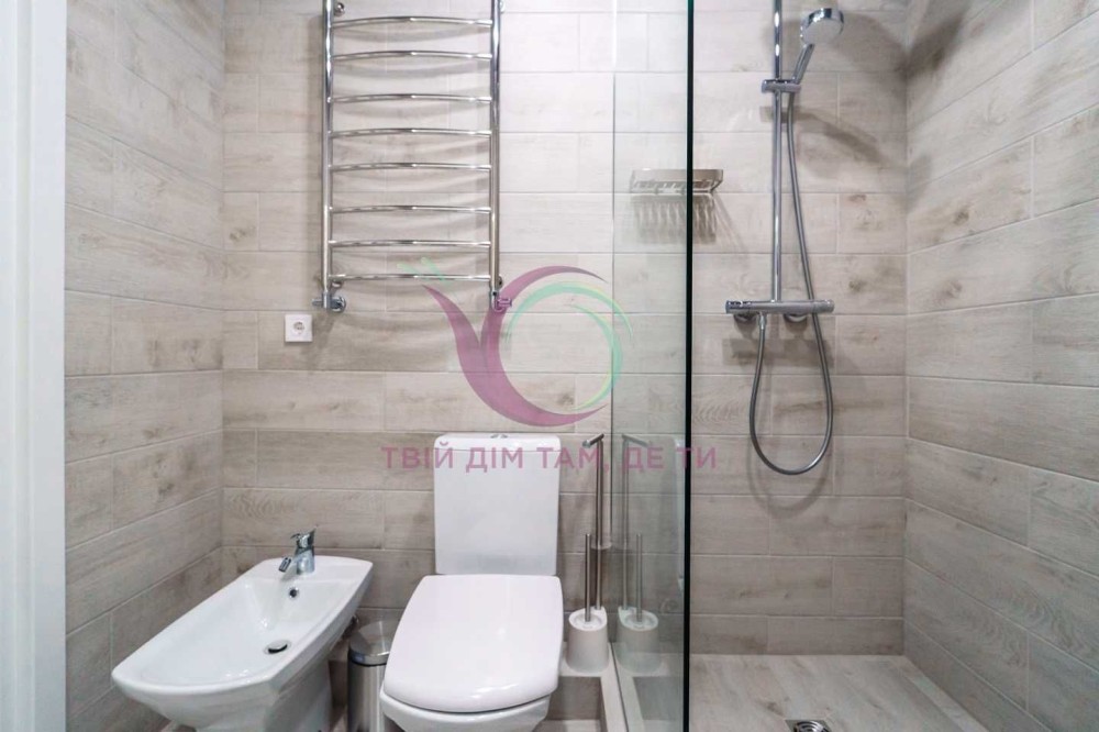 Стильна квартира має функціональне планування. Укомплектована побутовою технікою, місткими шафами для зберігання речей, зручним ліжком та усім необхідним для комфортного тривалого проживання. 2 санвузли (1 з душовою кабіною), має сушарку для рушників та якісну сантехніку.