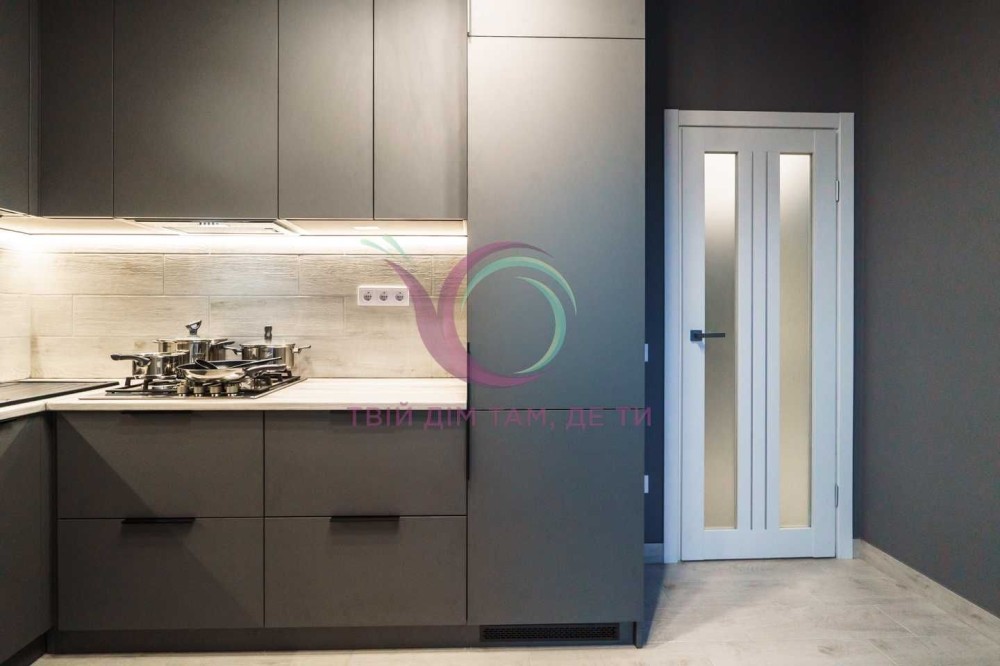 Кухня обладнана шафами для посуду, холодильником, плитою, духовкою, витяжною вентиляцією тощо. А також має зручну обідню зону.