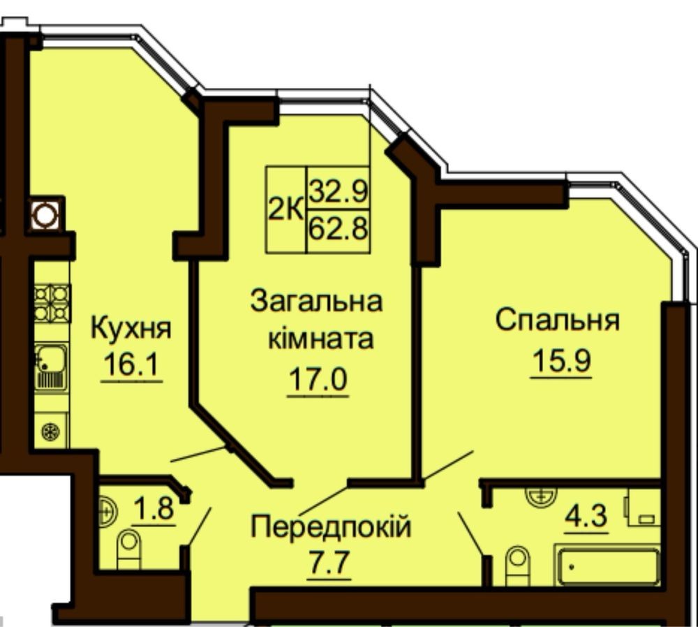 • Загальна площа 63 м2