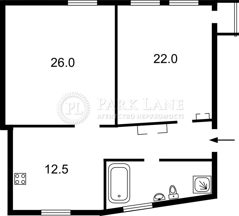 Пропонується в оренду 2-кімнатна роздільна квартира, 5 поверх (ліфт), площа: 77 кв.м. загальна, 46 кв. житлова, 13 кв. кухня.