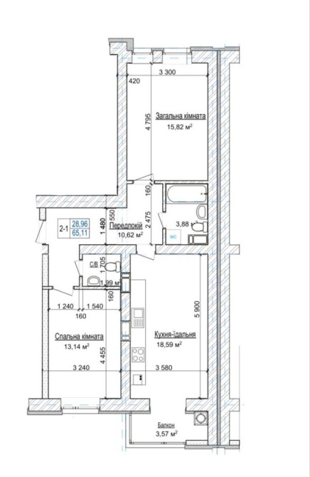 • Загальна площа 70.1 м2