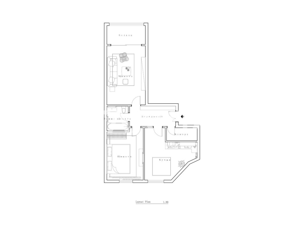 - Лоджія — закрита (засклена), можна облаштувати зону відпочинку або робоче місце