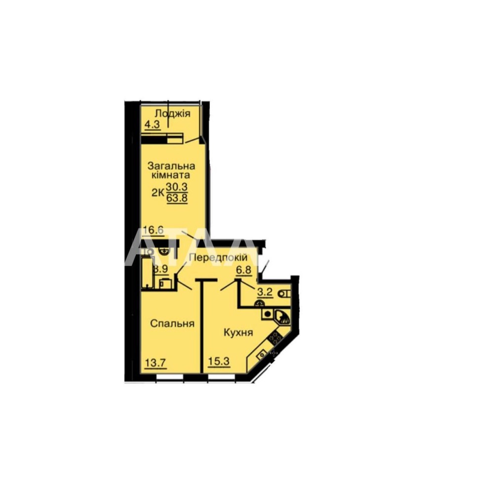 • Загальна площа 63.8 м2
