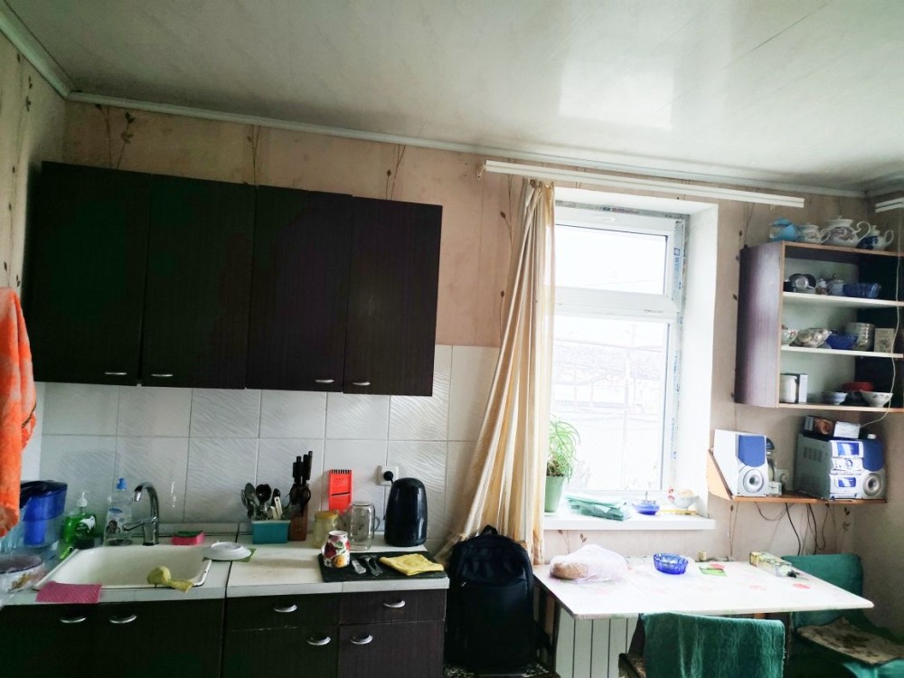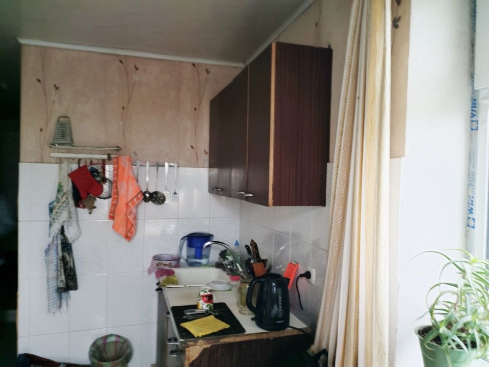 Квартира в жилом состоянии без ремонта, есть все удобства, ванна, туалет, погреб, двухконтурный котел для отопления и горячей воды, холодильник, газовая плита, стиральная машина- автомат, телевизор, мебель.