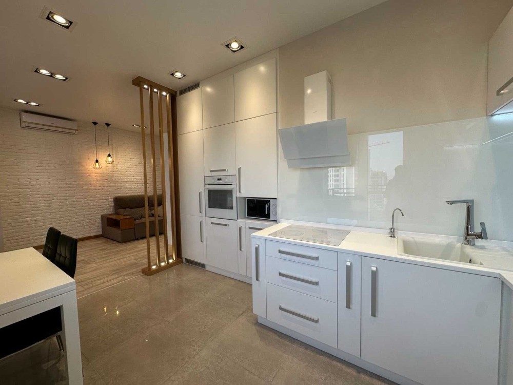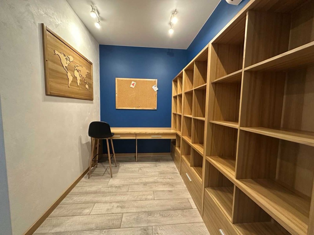 Продумане перепланування. Окрема спальня з затишною атмосферою та власною гардеробною — ідеальний особистий простір. Просторий кабінет, який легко адаптується під робочу зону. Є два повноцінних робочих місця та великий стелаж на всю стіну. За бажанням можна переобладнати під дитячу зону. Затишна вітальня, де хочеться проводити вечори з родиною або в колі друзів. З вітальні — плавний перехід у білосніжну кухню з лаконічним дизайном та вбудованою технікою високого класу. Світлий просторий санвузол з ванною та душовою кабіною, якісною інсталяцією, сучасною сантехнікою та зручністю в кожній деталі. Простора передпокій, містка гардеробна при вході — вирішує всі питання зі зберіганням речей.