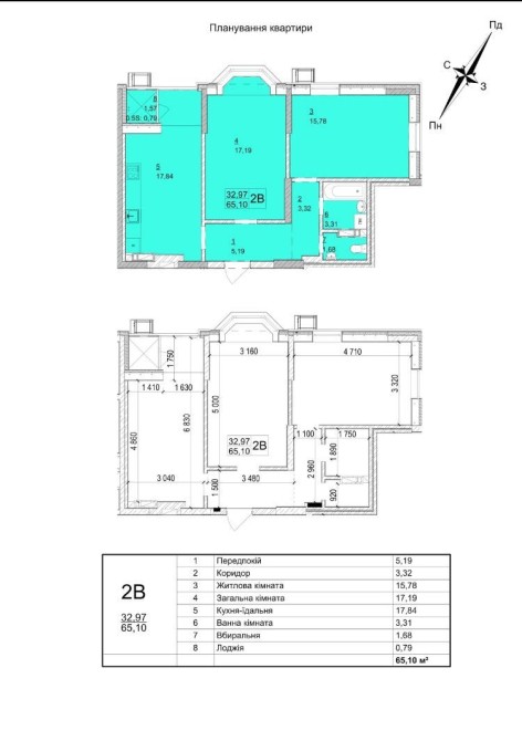 загальна площа 65.1 м
