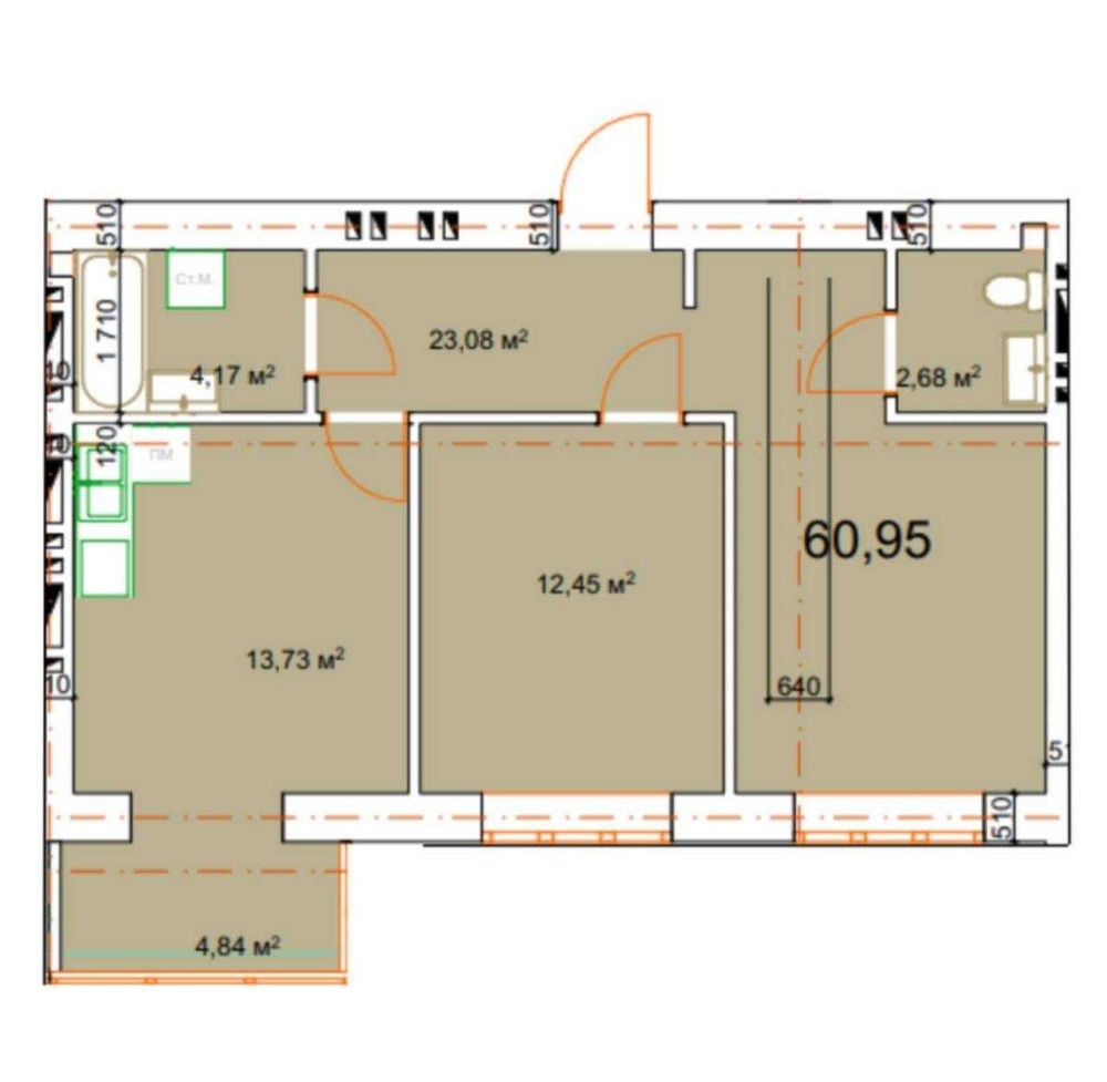 • Загальна площа 60.95 м2