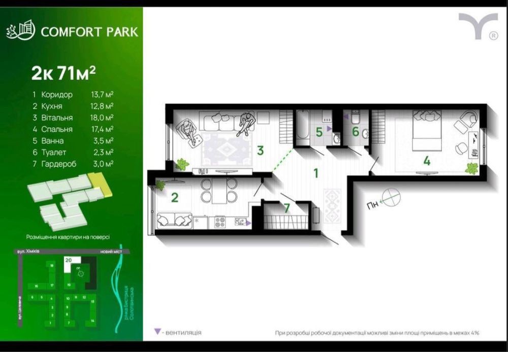 • Загальна площа 71 м2
