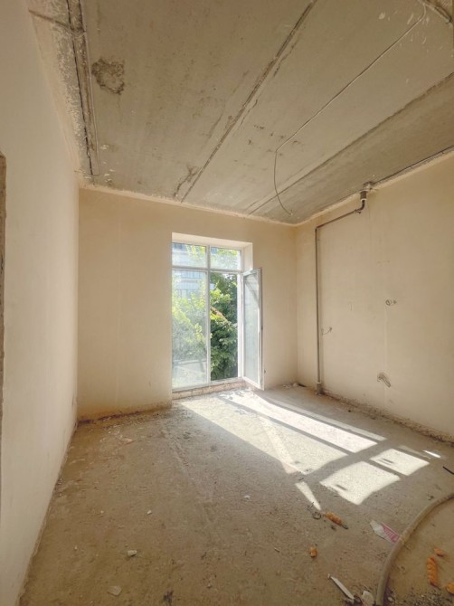 В дворі будинку басейн для жителів, тераси (є квартири з власними терасами, а також велика тераса на даху будинку, сучасний тихий ліфт, вітражні вікна до підлоги в кожній кімната. Дуже світла. З кожної кімнати є вихід на балкон.