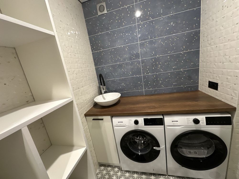 Виконаний якісний ремонт , всі меблі виготовлені по індивідуальному замовленню . Вбудована техніка , три телевізори LG , пральна машина Gorenje , сушильна машина Gorenje , вбудований холодильник , автономне опалення двоконтурним котлом . На стінах декоративна штукатурка , на підлозі в спальні - ламінат , на кухні та по всій квартирі широкоформатний керамограніт . Є відеоогляд квартири .