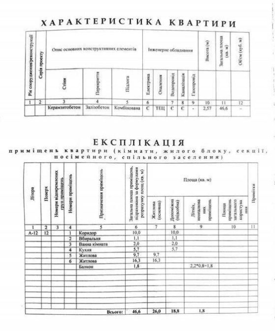 • Загальна площа 46.6 м2