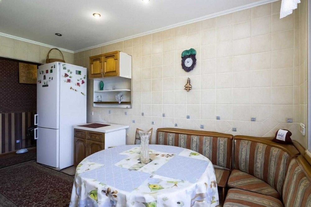 • Кухня 10 кв.м. обладнана всім необхідним: вбудована кухня, газова плита, витяжка, холодильник, телевізор.