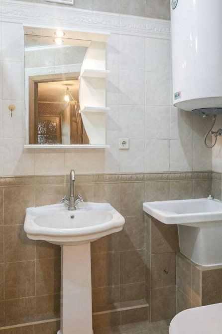 • Санвузол 7 кв.м.: пральна машинка автомат, душова кабіна, умивальник з тумбою, дзеркало, унітаз, електрична сушарка для рушників, бойлер.
