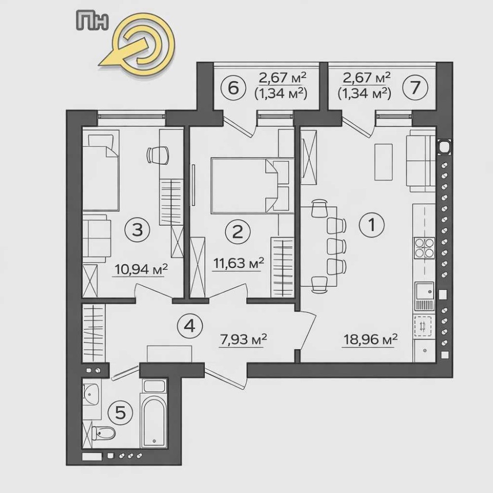 Двокімнатна квартира в новому сучасному житловому комплексі.