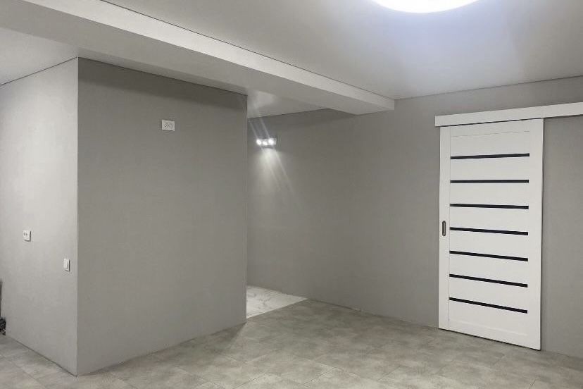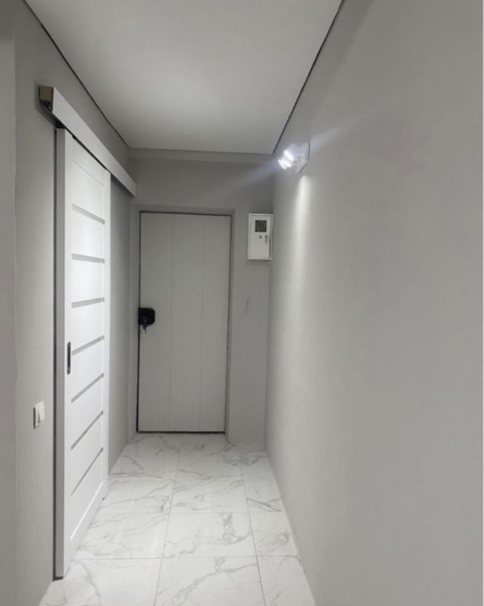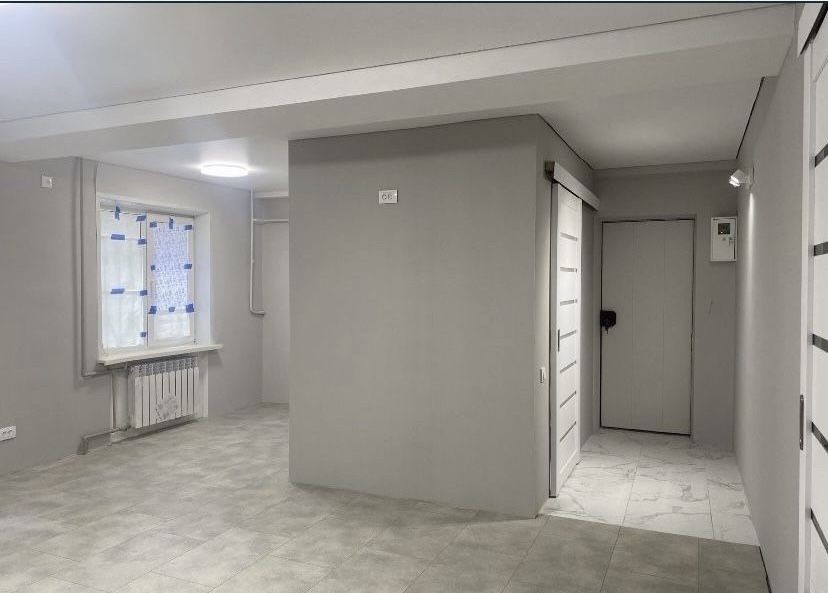 Зал та кухня обʼєднані в гостьову студію.Ванна з туалетом обʼєднані та оздоблено кахлем,натягнуто підвісні стелі.Замінений ввідний кабель та дроти.Міжкімнатні двері - розсувна система.