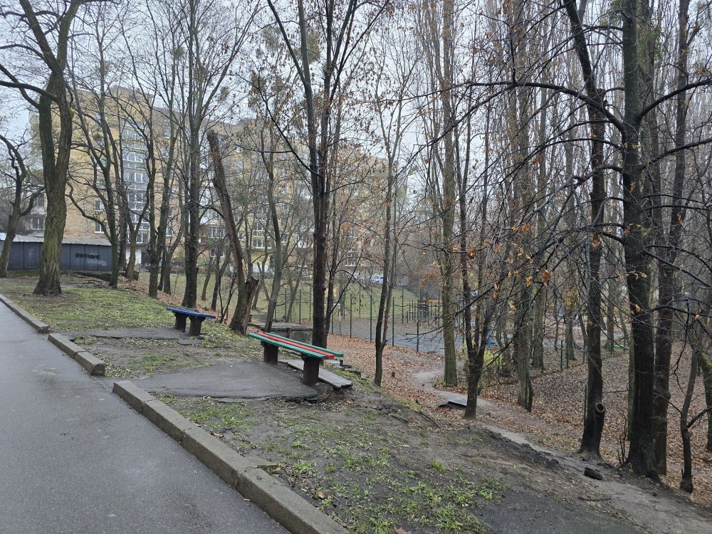 Навпроти будинку Голосіївський парк ім. Максима Рильського.