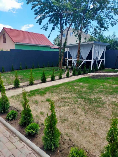 В личном пользовании своя зона барбекю и парковочное место для машины. Улица асфальтированная. Прекрасный район есть детский сад, школа, супермаркеты , знаменитый пляж "Яхта". Отдаленность от города 12 км.