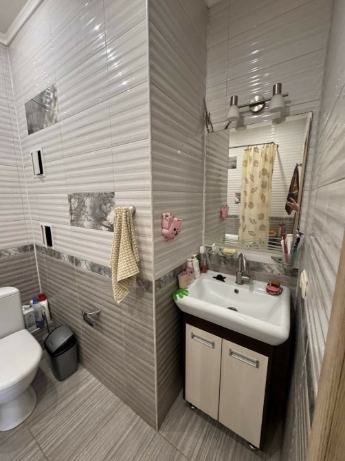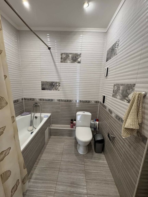 Санузел совмещён, облицован современной плиткой