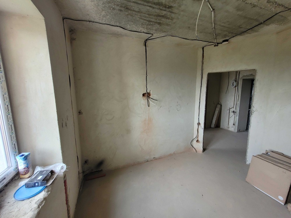 В квартирі виконані часткові ремонтні роботи.Розведено світло, опалення, вода. Встановлено інсталяцію в санвузлі. Закуплено матеріали. Придбано мінвата та два мансардні вікна для другого рівня.