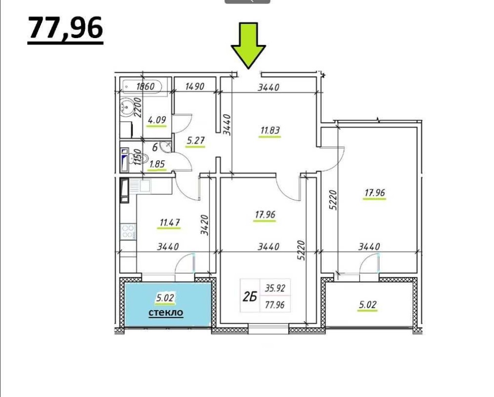 2к 77,96м2 ЖК Ревуцький вул. Ревуцького, 54 Харківський - фото 6