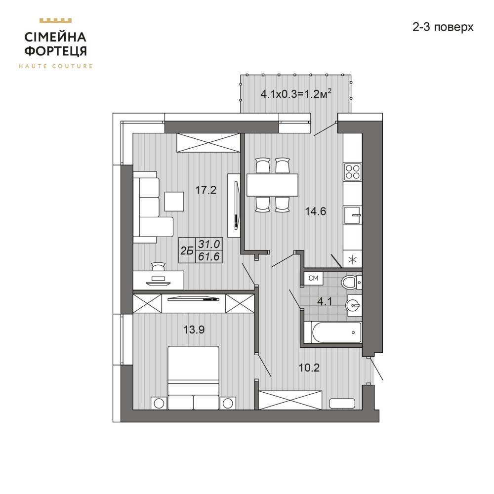 • Загальна площа 61 м2
