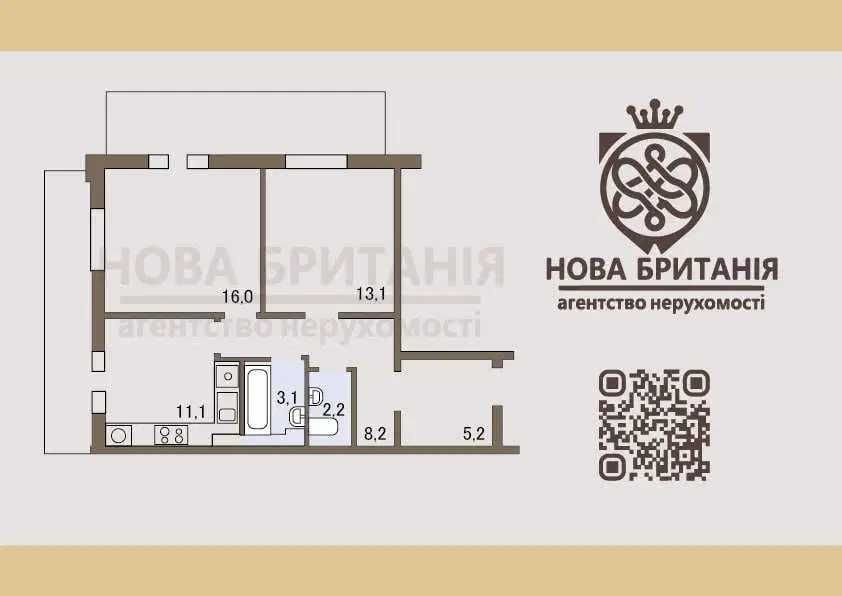 2к квартира 65м2 з балконом та терасою, ЖК Нова Англія, буд. Бірмінгем