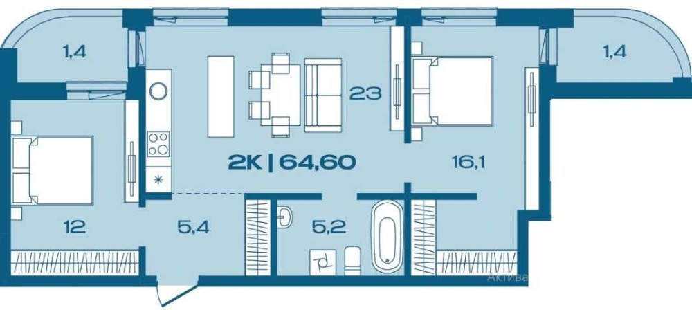 • Загальна площа 64.6 м2