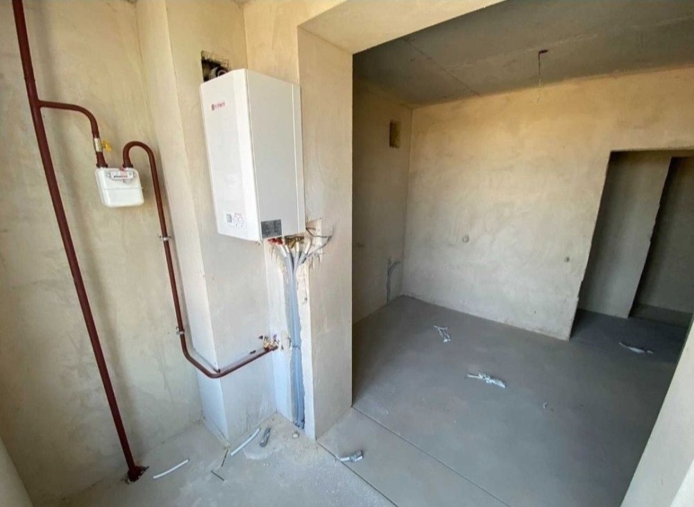лазерна стяжка підлоги, цементно-піщана штукатурка всіх стін, розведення електрики по всій квартирі + інтернет / телебачення / домофон, стеля - моноліт, а не пустотілі плити, двоконтурний турбований газовий котел, радіатори з розведенням по квартирі, металопластикові вікна (3 скла), вхідні металеві двері з накладкою МДФ, лічильники - газ, електрика, вода.
