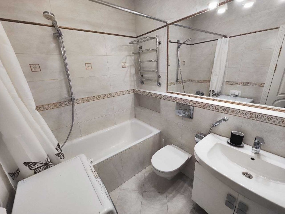 Квартира розташована далеко від оживлених вулиць, тому ви можете насолоджуватися тихим оточенням. Безкоштовна парковка поруч з будинком, цілодобовий консьєрж та охорона у вашому розпорядженні.