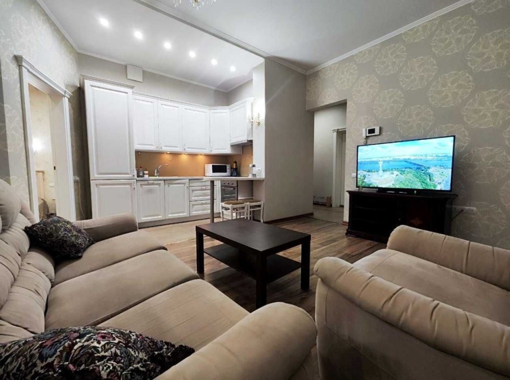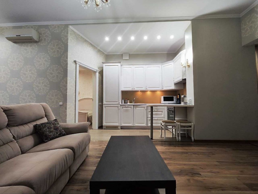 Зручне перебування в будь-який час року забезпечить встановлений кондиціонер. Вас порадує унікальний декор, такий як люстра, дзеркала, столешниці. Високі стелі створюють виняткове відчуття цієї квартири. У квартирі є окрема ванна кімната з усіма необхідними речами та індивідуальна кухня з усім необхідним кухонним приладдям . Тут є все необхідне для комфортного перебування.