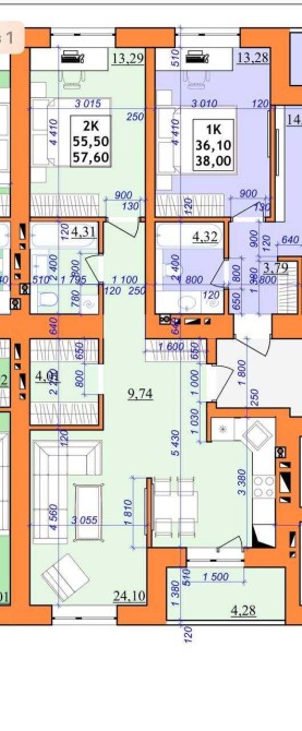 • Загальна площа 55 м2
