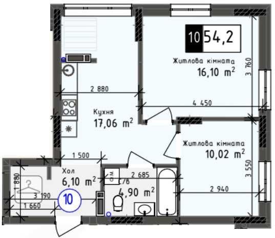 • Загальна площа 54.2 м2
