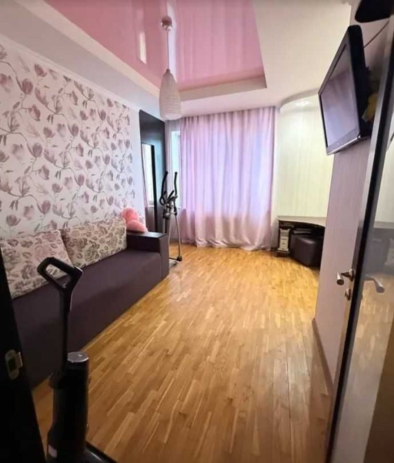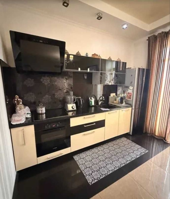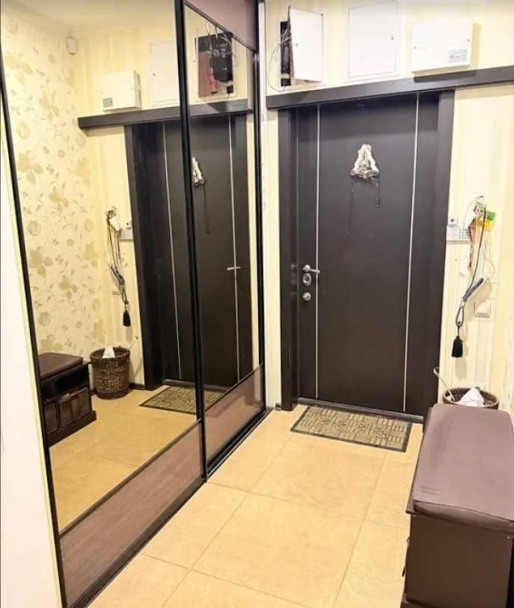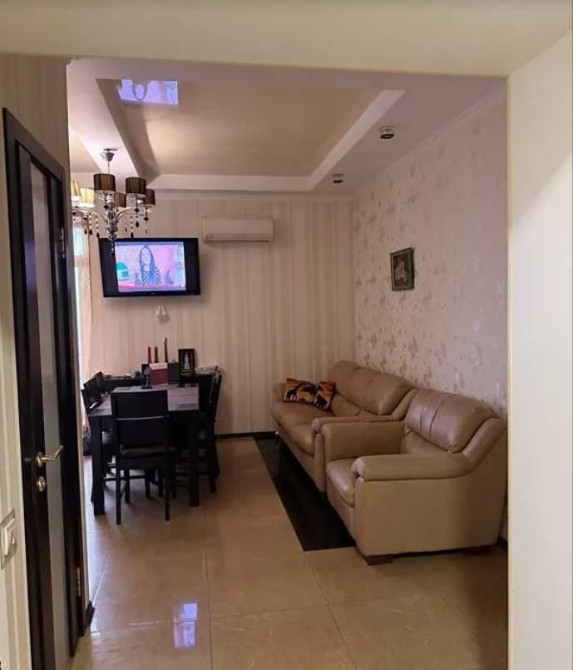 Оздоблення: натяжні стелі, підлога — керамічна плитка та паркет, стіни з декоративною штукатуркою. Квартира продається з меблями та побутовою технікою: телевізор, пральна машина, посудомийна машина, кондиціонер, вбудована кухня, гардеробна шафа, диван, двоспальне ліжко, витяжка, підключений інтернет.