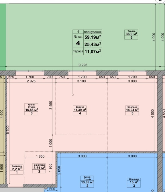 Загальна площа 59 м.кв
