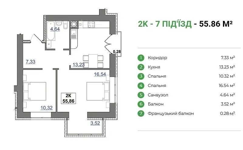 • Загальна площа 56 м2
