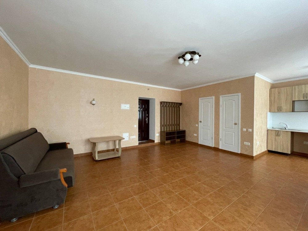 Мебель: Два шкафа, прихожая, обеденный стол с 4 табуретками, двухспальная кровать, книжный столик, современная кухня, плита, духовка, вытяжка. Проведен интернет.