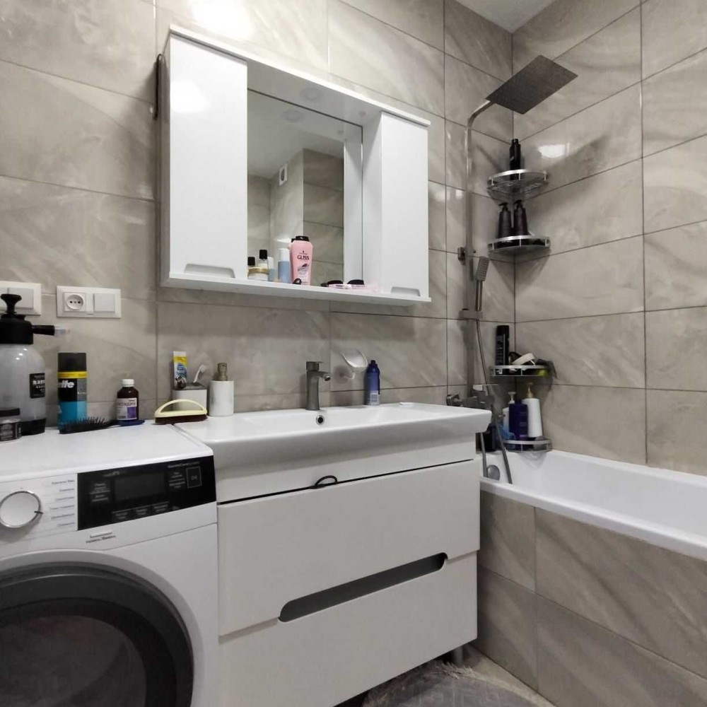 Санузел облицован ,совмещен,облицован современной качественной плиткой,есть полотенце сушитель.