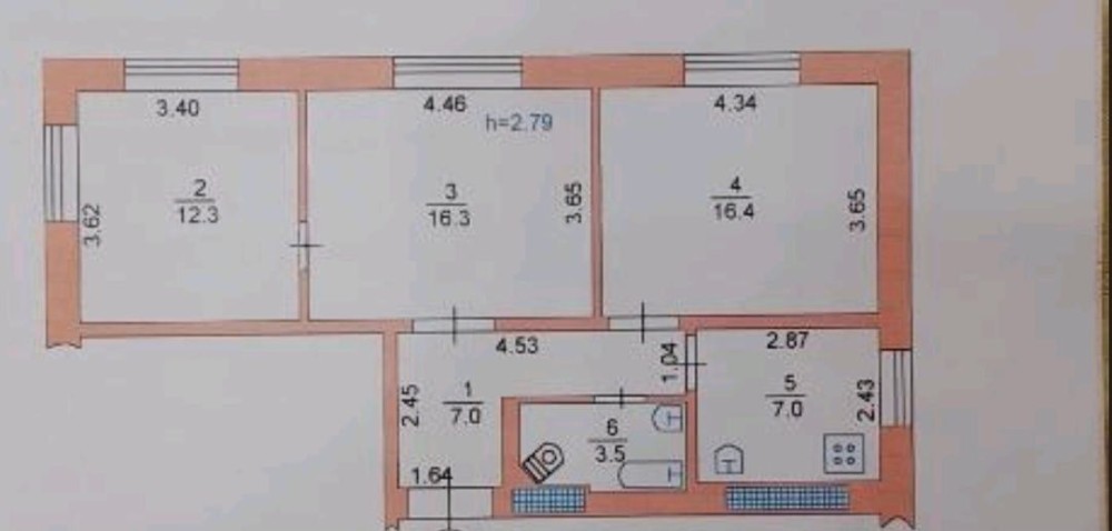 Морський район | 1/2 поверх | 64 м² (кухня 7 м²)