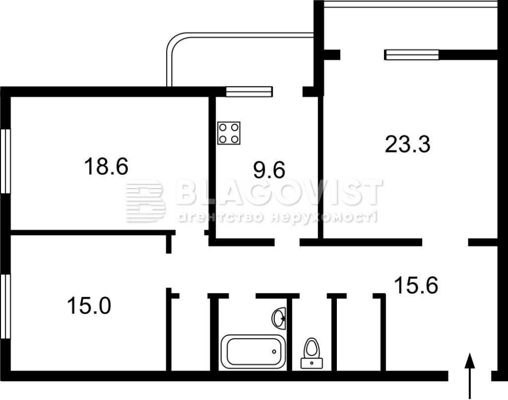 • Площа кухні 9.6 м2